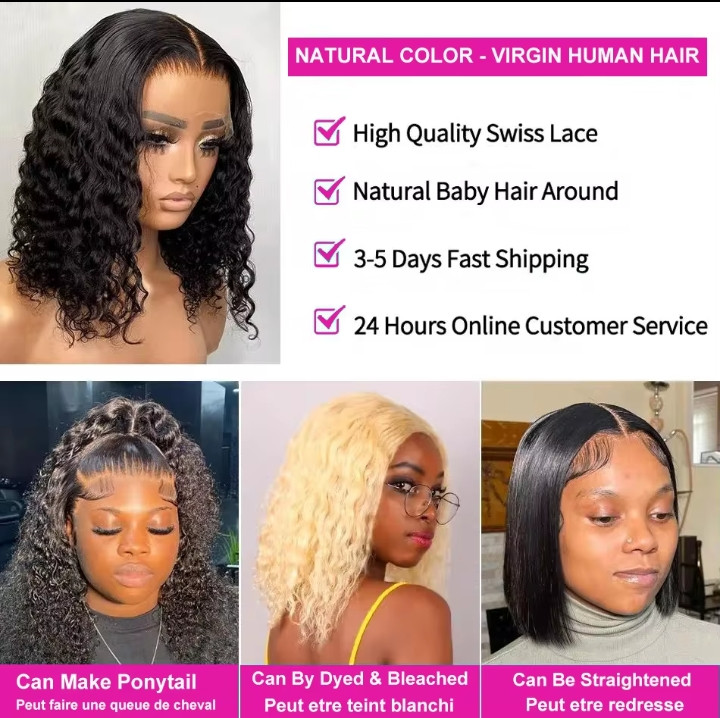 Brazilian Hair Deep Wave Short Bob Wig Human Hair 200% Density 13x4 Lace Front Wigs Deep Curly Wave 4x4 Lace Closure Wigs 16Inch