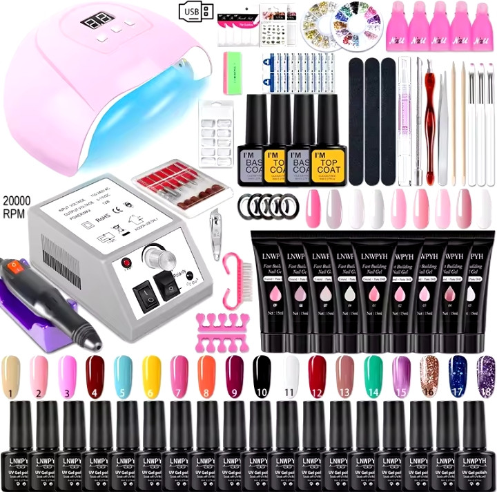Nail Gel Kit With LED Nail Light Dryer Nail Drill Machine Poly Nail Extension Gel Varnish Kit Soak Off Polish Manicure Tools Kit