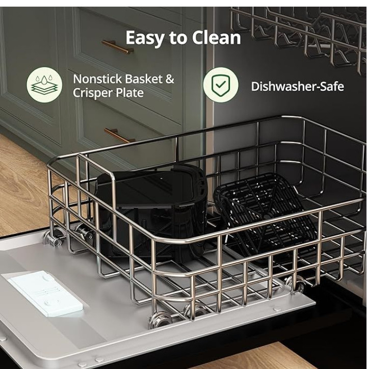 The integrated air filter keeps your kitchen fresh and clean, the air fryer is removable and dishwasher safe, and a recipe booklet is included to help you get started with healthy cooking. Healthy cooking is the new lifestyle!