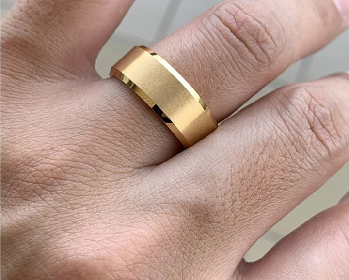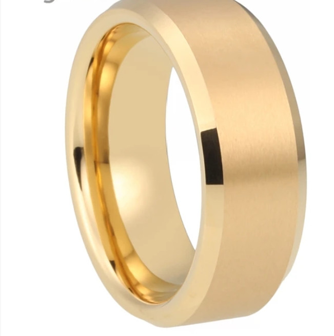 8mm Gold Tungsten Ring Matte Finish Beveled Edges