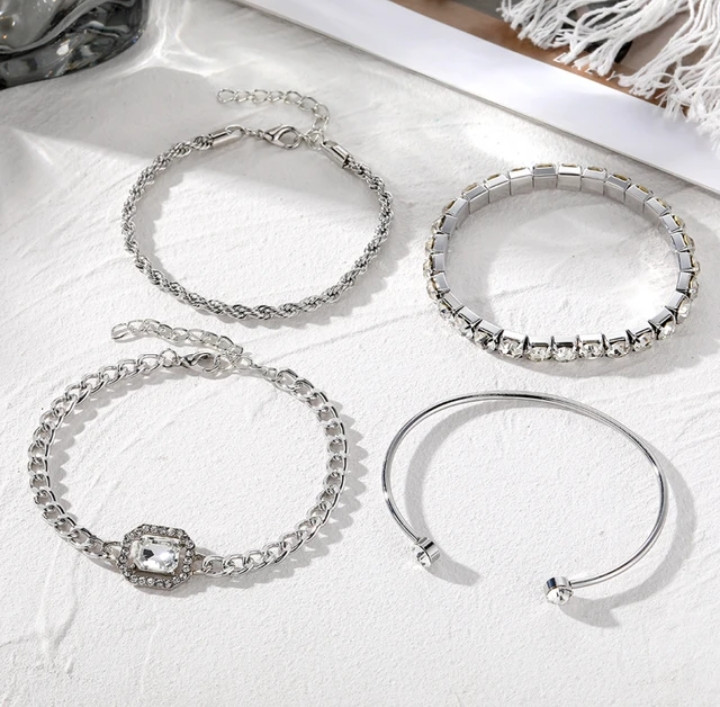 4 PCS Multi-layer Zircon Alloy Bracelets Adjustable Bangle Men's and Women's Retro Punk Style 2023 Fashion Jewelry