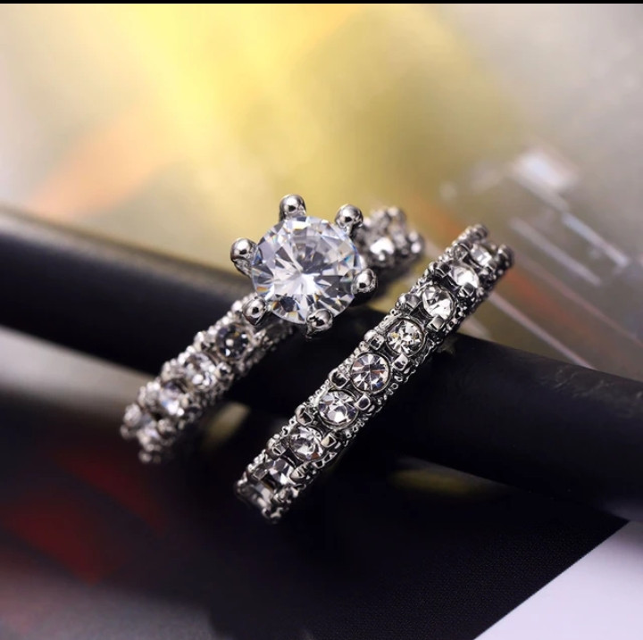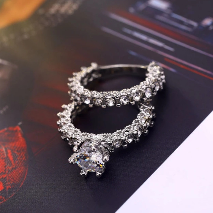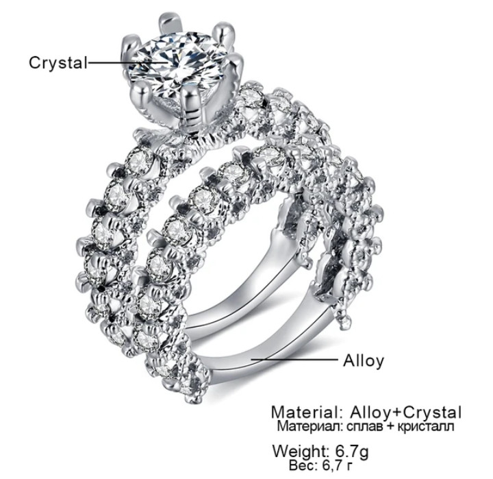 IPARAM Elegant Zircon Ring Jewelry Silver Color Wedding Ring Set for Women Zircon Crystal Jewelry
