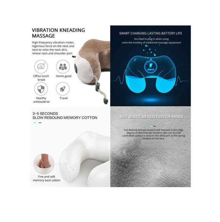 5) Features a double-layer velvet fabric with skin- friendly fine texture. Its U-shape ergonomic design is perfect not only as a neck massager but also as an airplane pillow.
