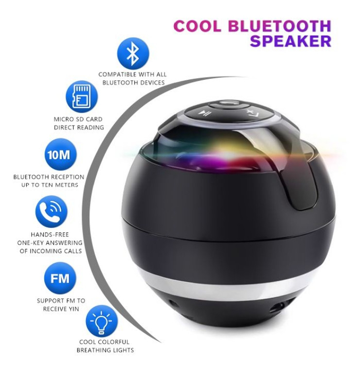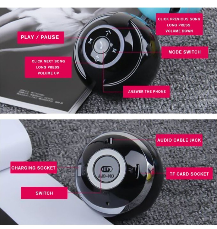 2. The ball Bluetooth speaker with FM radio function, you can directly search for radio stations in the listening area. Long press the pause button to switch the automatic radio search mode.