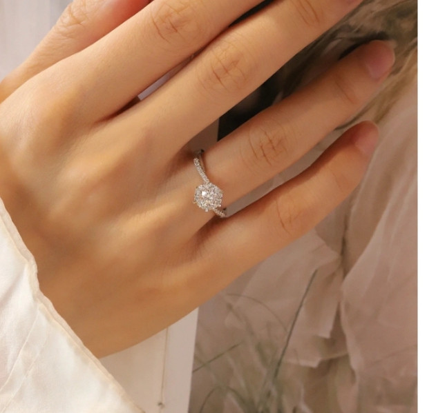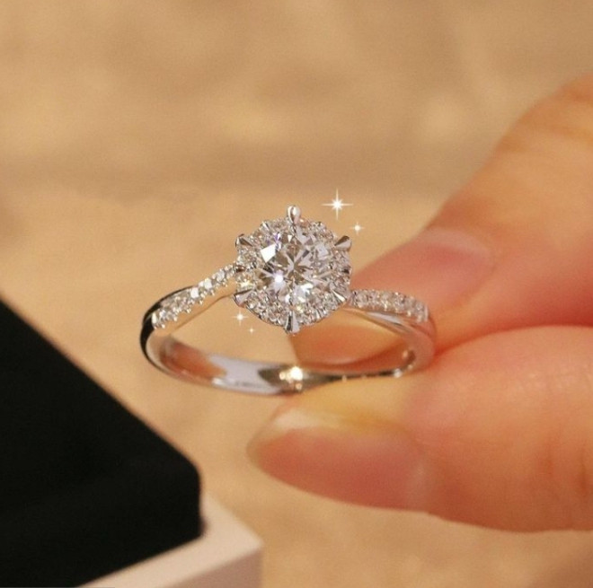 Women's Light Twisted Snowflake SUNFLOWER Proposal Ring